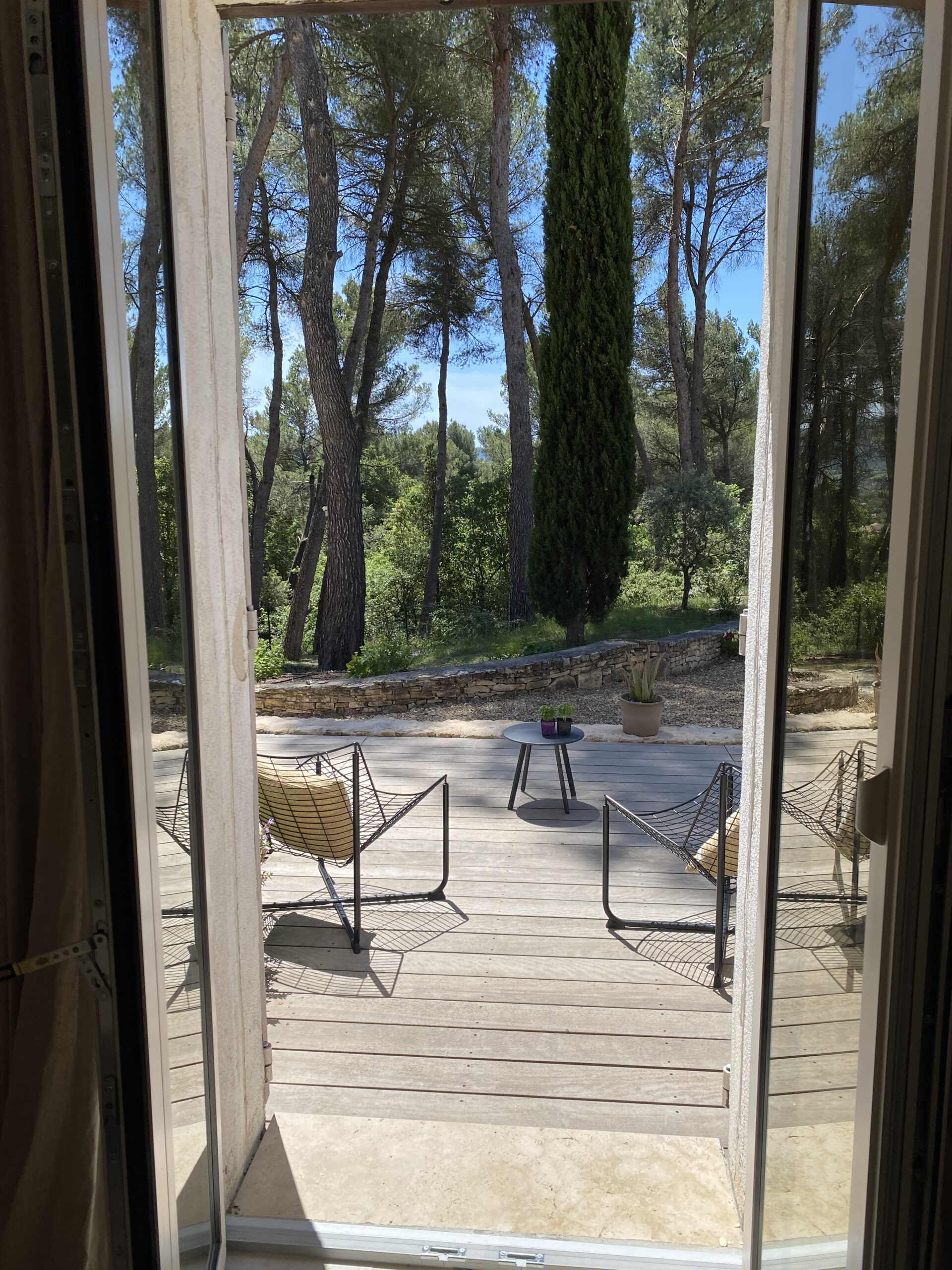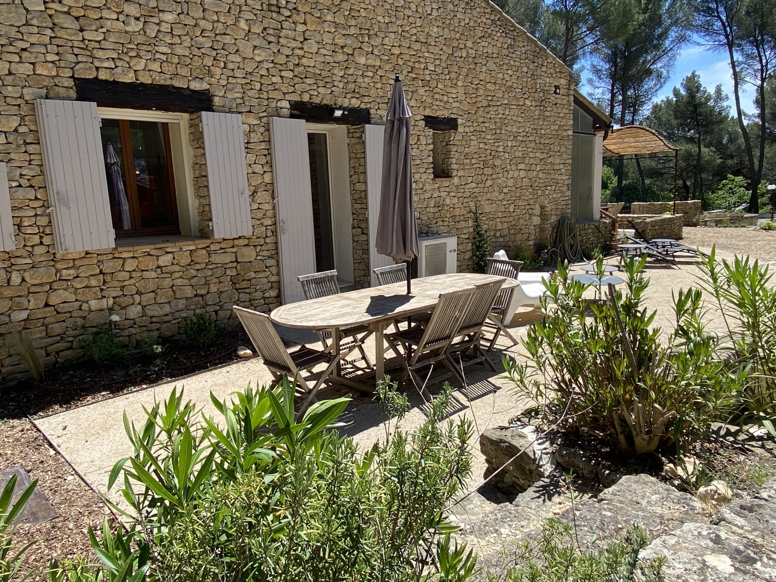 Implantée dans un environnement de Pinède offrant ombre, senteurs et quiétude, la maison domine la plaine du Luberon. De là vous pouvez admirer la chaine des petits et Grands Luberon.